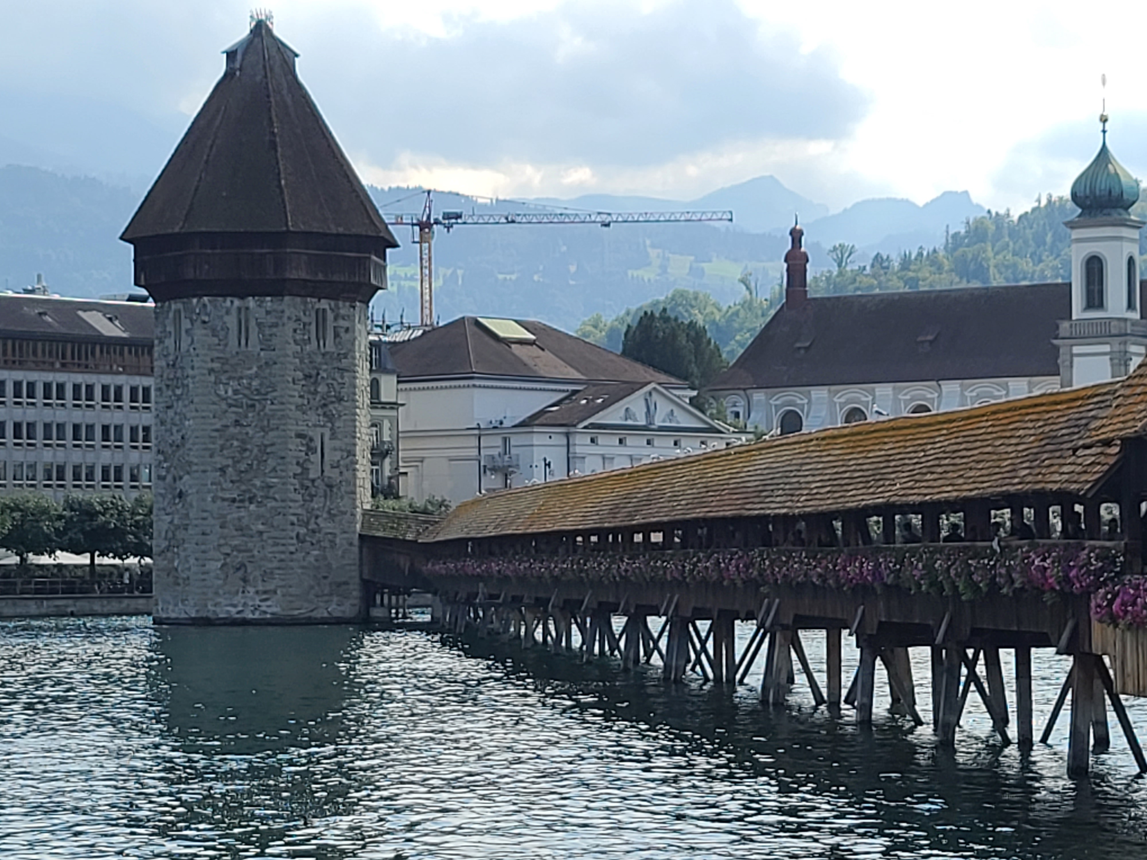 카펠교 - 호수위에 놓여진 꽃으로 장신된 목조다리